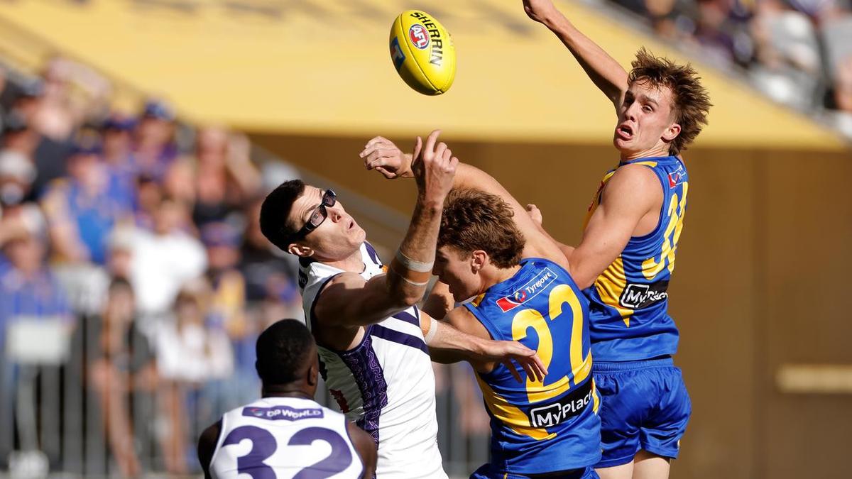 Luke Jackson was Fremantle’s main man in the ruck on the way to 29 hit-outs, 16 disposals and a goal, with Cox left in a secondary role.