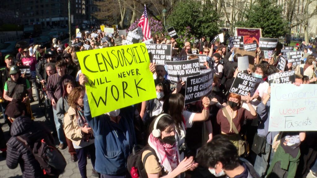 Students and staff at college campuses across the US are angry at what they say is an assault by the White House on academic freedoms. Hundreds rallied in New York to protest the Trump administration’s policies. Gabriel Elizondo was there.